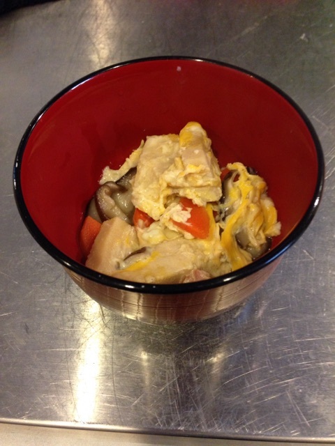 だし汁に麺つゆちょっといれたもので高野豆腐と野菜を煮る