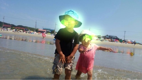 先日、夫が子供らを海に連れて行ったときの写真。二人のはしゃぎっぷりが可愛い(親バカです)