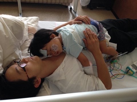 抱っこでしか寝ない娘を抱っこしながら入院書類をかくこともむずかしく