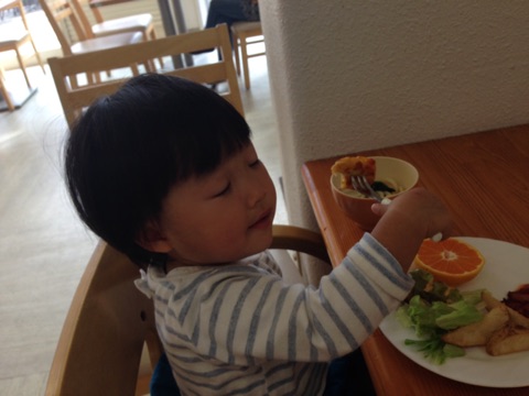 子ども用のスペースもありランチのあとは、庭の遊具で遊ばすこともできます~。