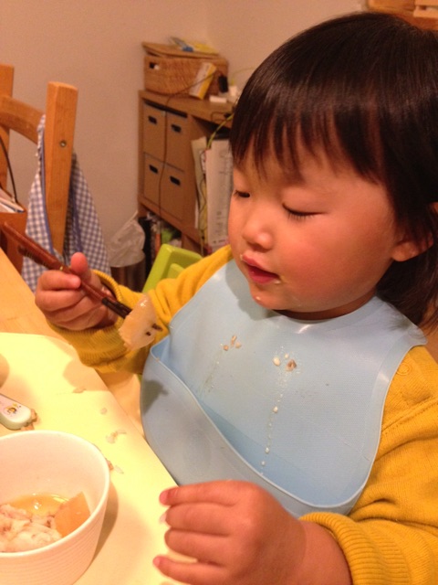 お兄ちゃんのほうも、箸は2歳から使い始めE〇〇SON要らずです~![]()