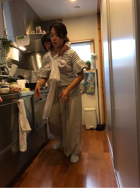 ▼帰ってから早速ぐずぐずだった娘にさらしおんぶを復習がてら♡