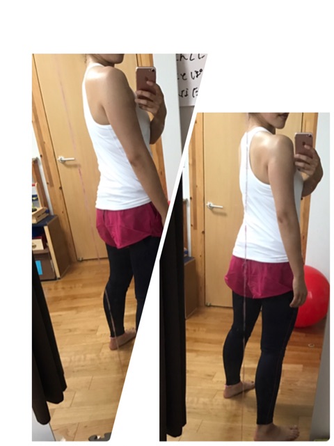 左がまったく意識していない背中。肩もすこし上がっていますね。