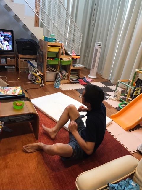 今日は夫に協力してもらいバランスボール教室のリード練習。
