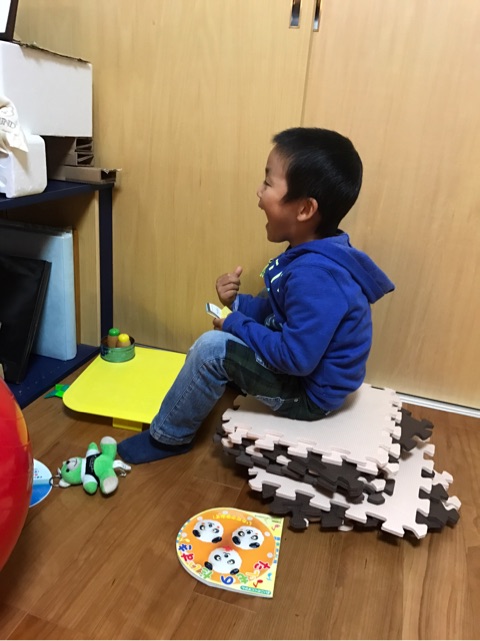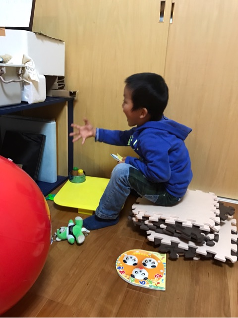 母を独り占めし、大好きなごっこ遊びでご機嫌です。