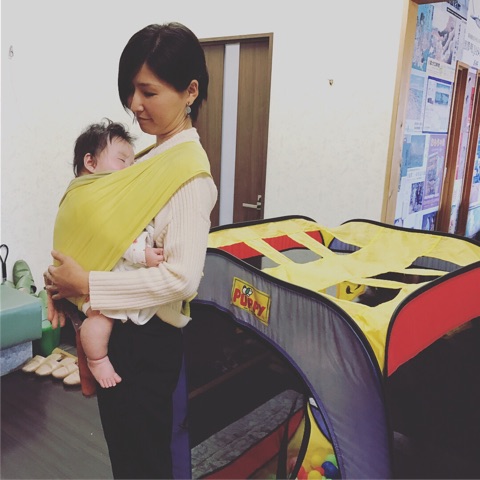 今日の託児、子育てコミュニティtocotocoのゆっこちゃんが7ヵ月のKちゃんをお預かり。
