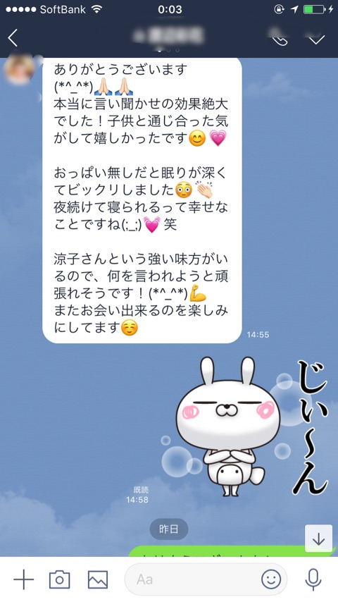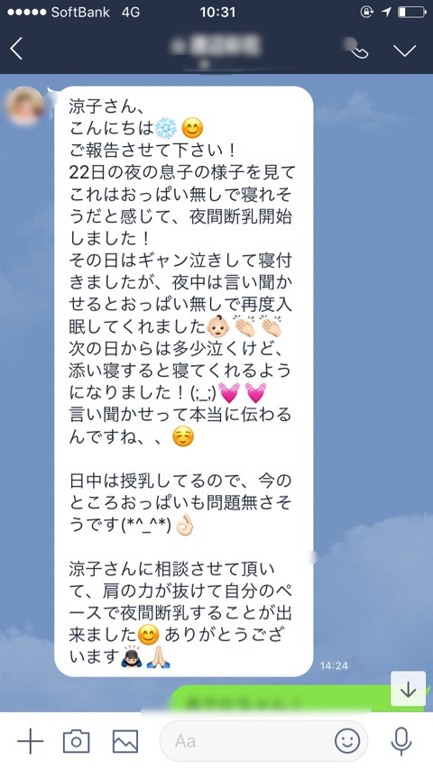 先日、乳腺炎のケアにはいったAちゃんからうれしいご感想がとどきました。