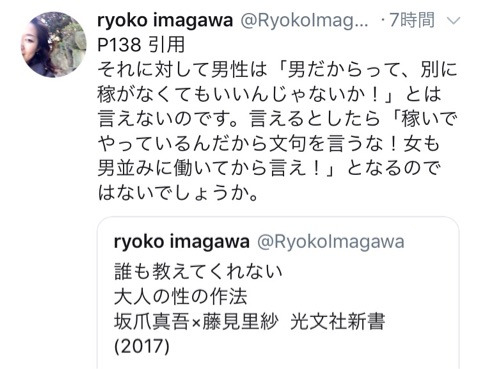 そんなこと言っちゃう男性にも、女と同じように「呪縛」があったんだという事を考えさせられたから。