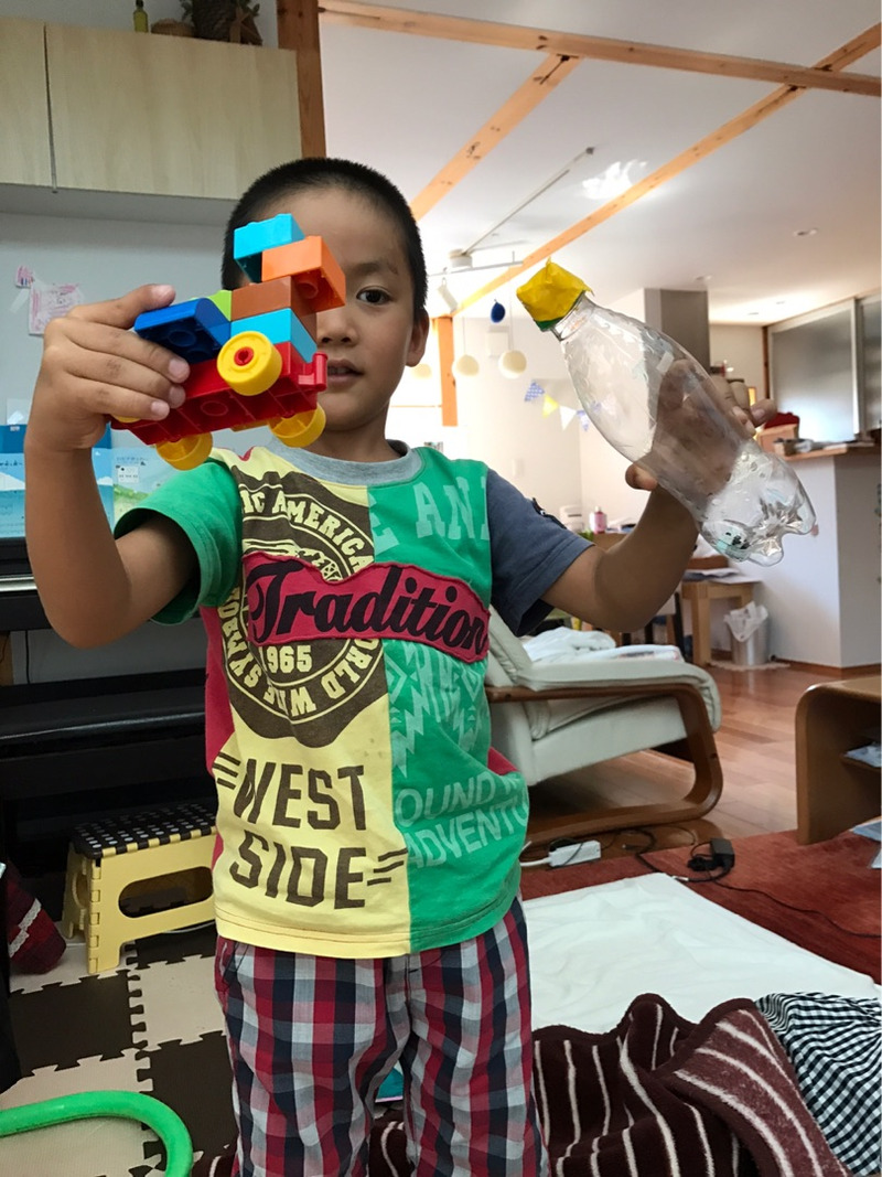 レゴで彼はいろんな飛行機をつくって、お店を出している店長さん。