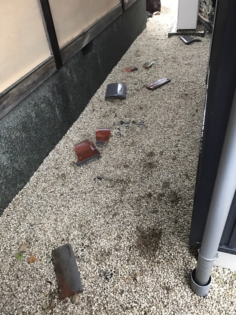 がっちゃーんとものすごい音がして、外見に行ったら瓦が落ちてきてました。