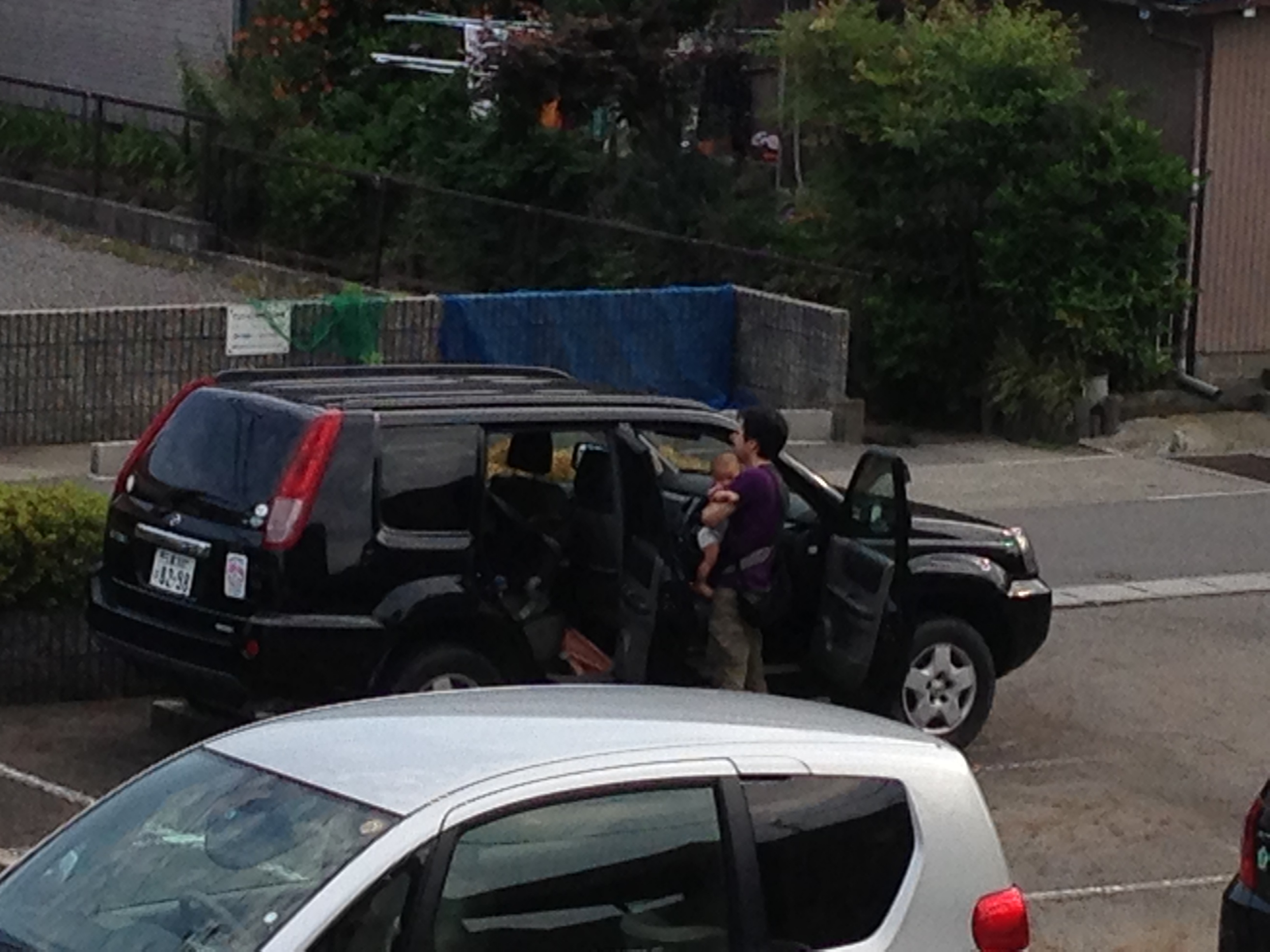車で出発するのにチャイルドシートのせ、
