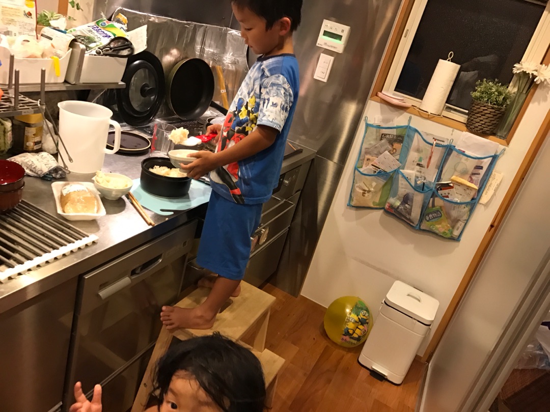 ▲ご飯お多め少なめー?5歳男児、  少なめーと3歳女児  オカンと思春期の娘かいっ。