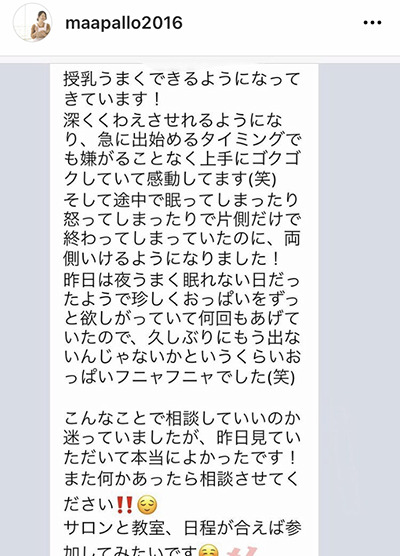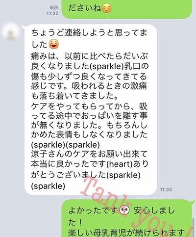 出張母乳ケアのご利用者様から嬉しいご報告をいただきました!